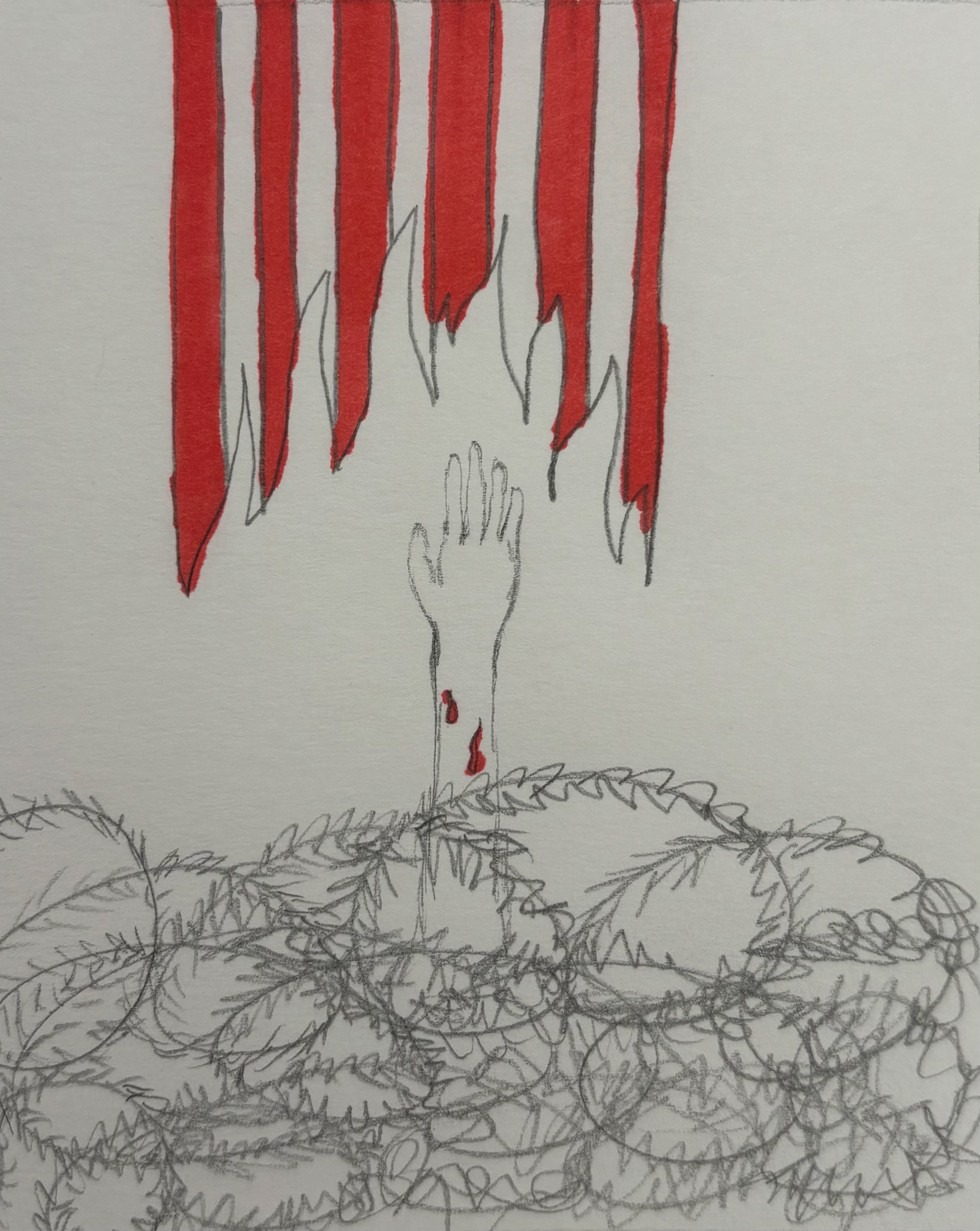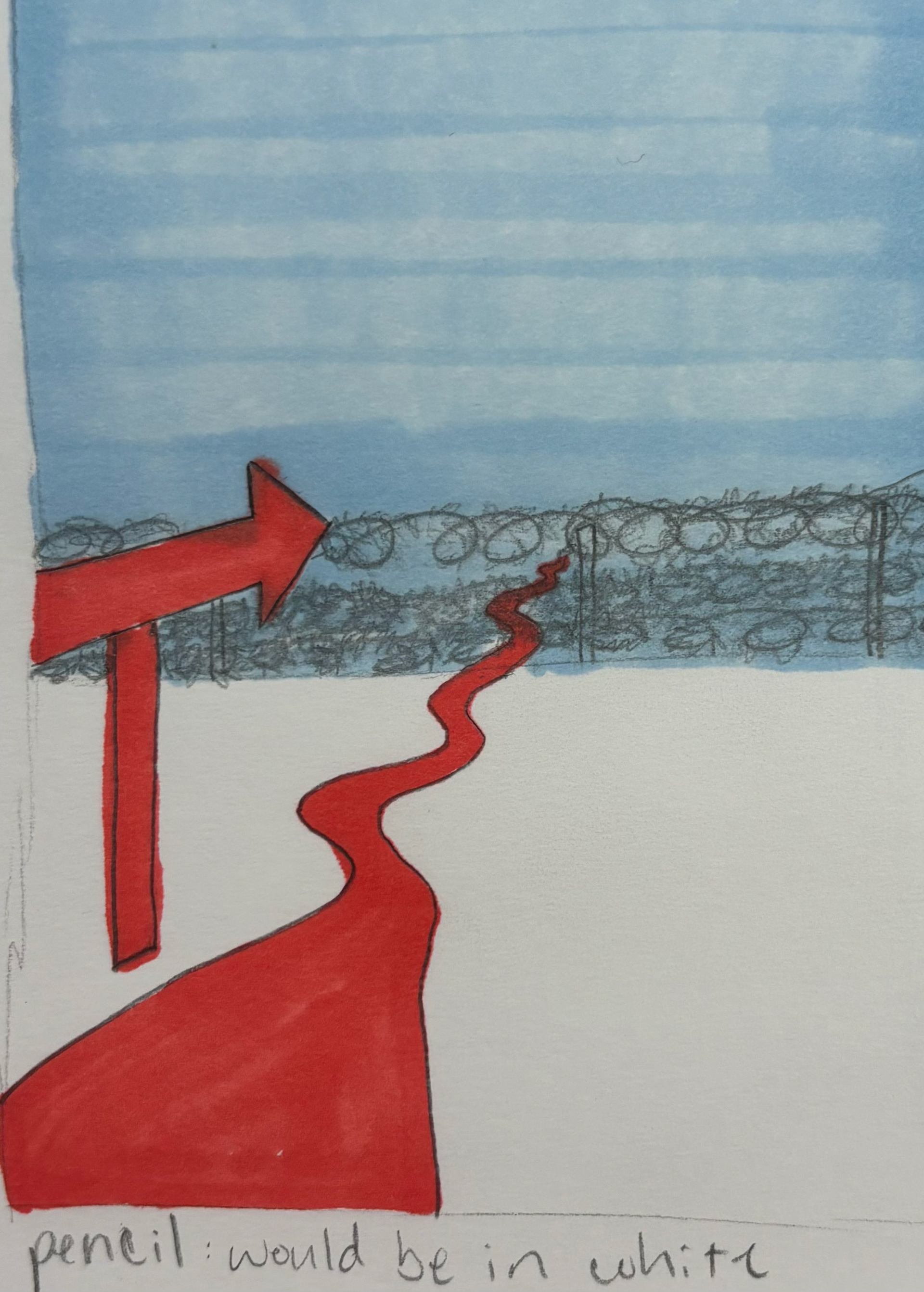 The limitations for this project were that I could only use 2 colors and the white from the paper. I began sketching with that in mind, starting from the most literal and far away to zooming in more and more. My third sketch was the direction I ended up leaning towards.